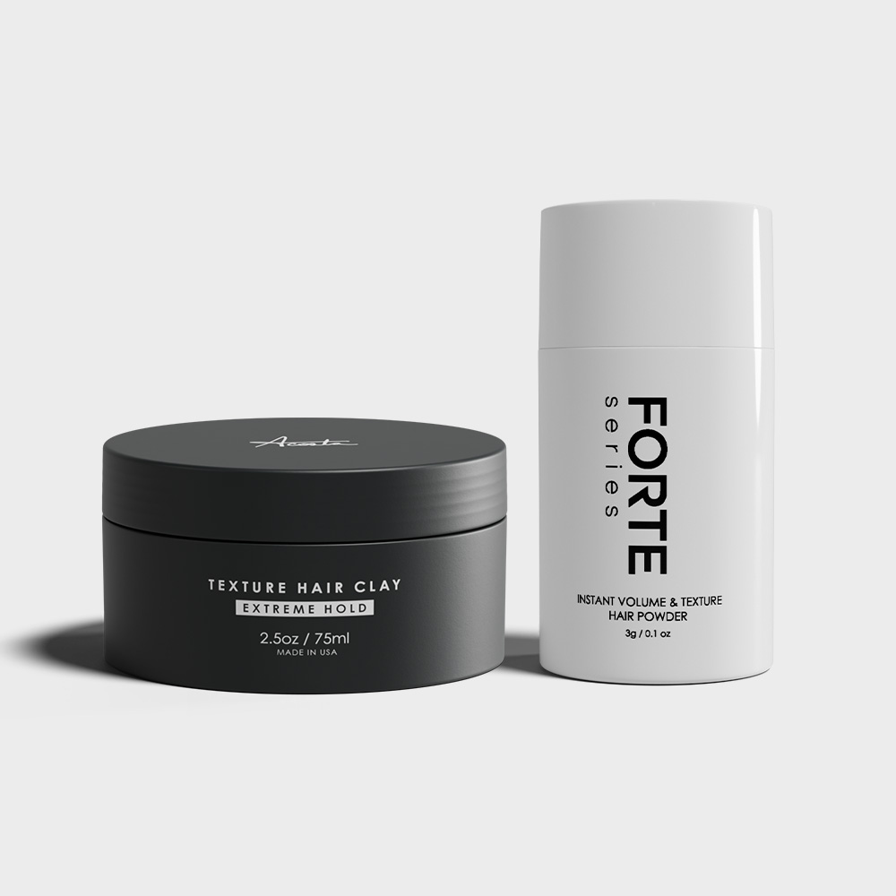 Simple 3-step process: Apply the Extreme Hold Texturizing Clay to dry hair, add 3-4 taps of Texture Powder for lift and oil absorption, then rake with fingers to lock in your look.